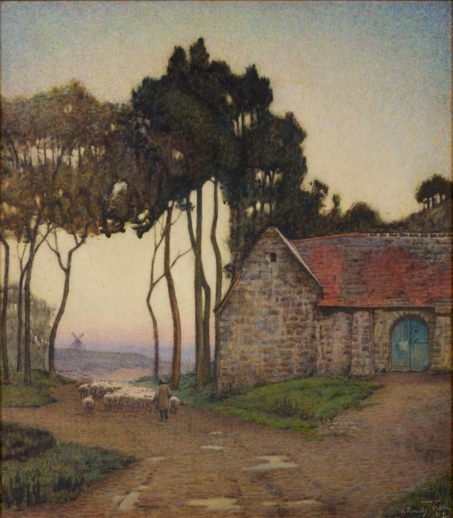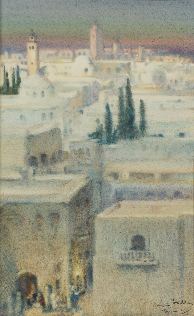 He found inspiration for his watercolours travelling to France, particularly the Basque Country and Brittany, Spain, Portugal, Egypt, Italy, Holland, Germany and the Magreb. He started summer art classes in Polperro Cornwall and winter classes in Menton and Sintra. Romilly was a member of the Clifton Arts Club, Chelsea Arts Club, Royal West of England Academy. Among his painter friends were Claude Flight, Clausen, Martin Hardie, Curnow Vosper, Percy Jowett.